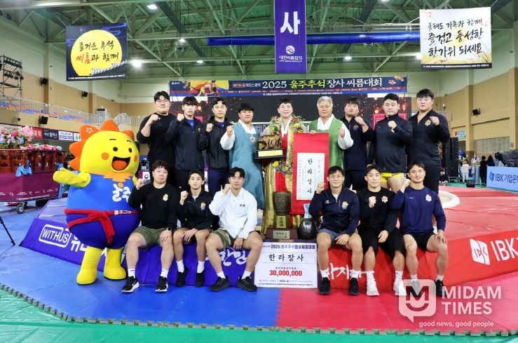미담타임스 김준완 기자 | 울산 울주군이 지난 2일부터 8일까지 울주종합체육센터에서 개최한 ‘위더스제약 2025 울주추석장사씨름대회’가 관중들의 뜨거운 응원 속에 성황리에 막을 내렸다.