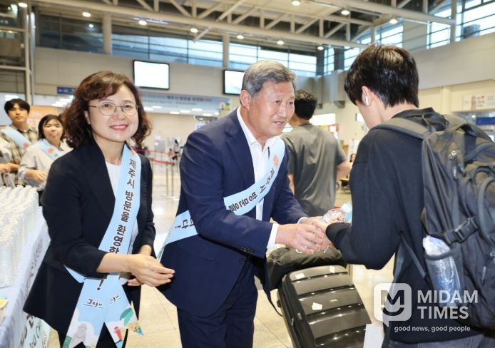 미담타임스 정인화 기자 | 김완근 제주시장은 2일 제주항국제여객터미널에서 추석 황금연휴를 맞아 제주를 찾은 귀성객과 관광객을 환영했다.