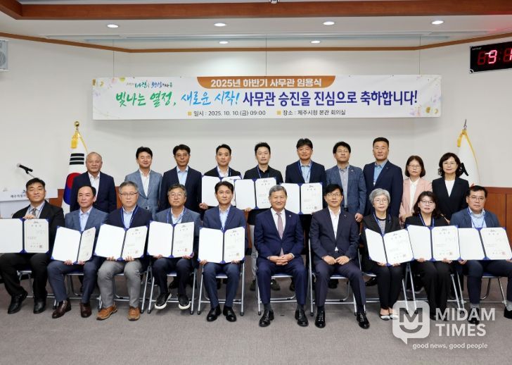 미담타임스 정인화 기자 | 제주시는 2025년 10월 3일자 사무관 승진 임용자 11명에 대해서 10월 10일 제주시청 본관 회의실에서 임용장 수여식을 개최했다.