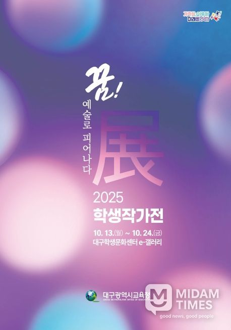 미담타임스 남혜영 기자 | 대구시교육청은 10월 13일 부터 10월 24일까지 대구학생문화센터 e-갤러리에서 학생들의 꿈과 예술적 재능을 꽃피우는 특별한 전시, 2025 대구학생작가전 ‘꿈! 예술로 피어나다展’을 개최한다.