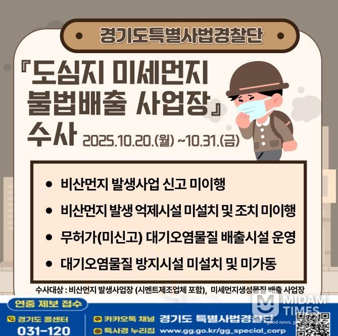 이번 수사는 미세먼지 농도가 증가하는 겨울철을 앞두고 건설공사현장 및 시멘트 제조업체, 대기배출시설 등에서의 불법적인 미세먼지 배출 행위를 사전 차단하기 위한 선제적 조치다. 미세먼지는 폐 깊숙이 침투해 호흡기와 심혈관 질환을 유발할 수 있는 1급 발암물질로 특히 어린이, 노약자는 장기간 노출될 경우 폐 기능 저하, 기관지염, 심근경색, 뇌졸중 위험 증가 등 심각한 건강 피해를 입을 수 있다.