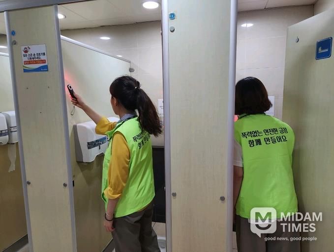 미담타임스 김교환 기자 | 부산시 금정구는 지난 10월 1일 오후 2시부터 4시까지 장전역과 부산대역 공중화장실을 대상으로 불법촬영기기 설치 여부에 대한 합동점검을 실시하고, 디지털 성범죄 예방 및 불법 촬영 근절을 위한 홍보 캠페인을 전개했다.