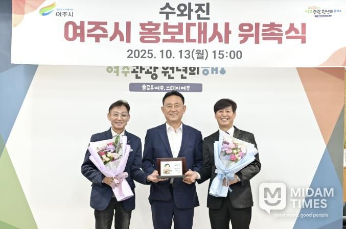 이충우 여주시장은 “우리 가요계, 버스킹 공연의 원조이며 선행의 아이콘인 수와진을 홍보대사로 모실 수 있어서 매우 뜻깊게 생각한다”면서 “2025년 여주 관광 원년을 맞아 여주에서 더욱 활발한 활동을 펼쳐주시기를 기대한다”라고 말했다.