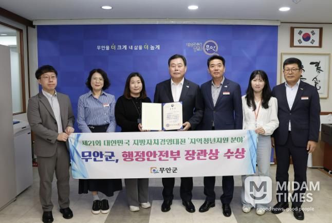 미담타임스 정인화 기자 | 전남 무안군은 행정안전부와 한국일보가 공동으로 주최한 '제21회 대한민국 지방자치경영대전'에서 지역청년 지원 분야 우수기관으로 선정되어 행정안전부 장관 표창을 수상했다.