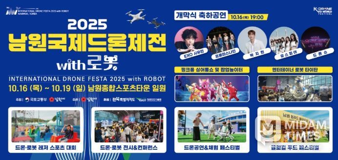미담타임스 정인화 기자 | 국내 최대 규모의 융복합 드론 축제인 ‘2025 남원국제드론제전 with 로봇’이 오는 10월 16일부터 19일까지 4일간 남원종합스포츠타운 일원에서 성대하게 개최된다.