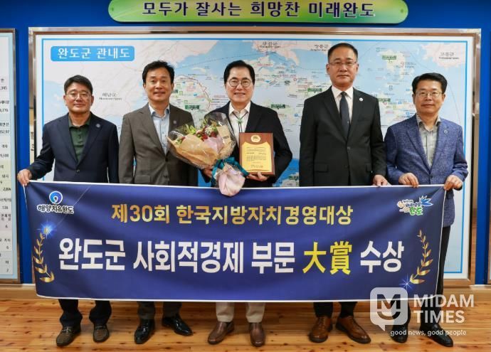 미담타임스 정인화 기자 | 완도군은 14일 서울 공군호텔에서 열린 '제30회 한국지방자치경영대상' 시상식에서 사회적 경제의 저변을 확대하고 주민 참여형 순환 경제 모델을 정착시킨 공로를 인정받아 ‘대상’을 수상했다.