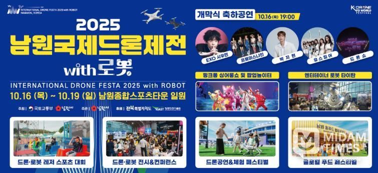 미담타임스 정인화 기자 | 미래 산업과 문화, 체험이 어우러진 국내 최대 드론·로봇 융복합 축제 ‘2025 남원국제드론제전 with 로봇’이 오는 10월 16일부터 19일까지 4일간 남원종합스포츠타운 일원에서 열린다.