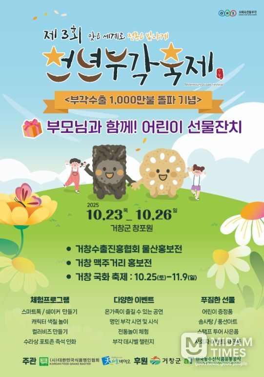 한편 부각의 본고장 경남 거창군은 천혜의 자연환경과 농산물의 뛰어난 품질을 바탕으로 전통식품 산업이 꾸준히 성장해 왔다. 또한 행사 장소인 거창창포원은 수려한 자연경관과 넓은 광장, 가족친화형 공간이 조성되어 있어 매년 많은 관광객이 찾는 거창의 대표 명소다.