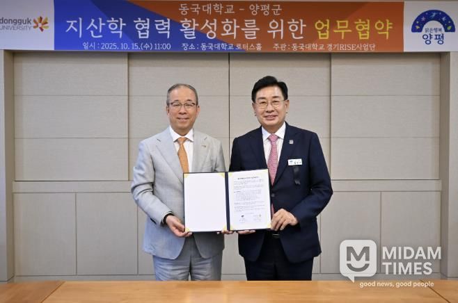 미담타임스 정주환 기자 | 양평군과 동국대학교는 15일, 서울 동국대학교 본관 4층 로터스홀에서 교류 협력 및 공동사업 기반 조성을 위한 업무협약(MOU)을 체결했다.