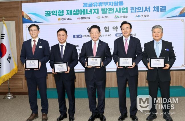 이번 협약을 통해 전남도와 영광군은 유휴 공공부지 발굴과 행정지원, 개발이익 공유계획 수립을 담당하고, 한전KDN은 재생에너지 설비의 효율적 운영과 통합관리체계 구축을 맡게 된다.