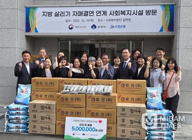 미담타임스 정인화 기자 | 군산시는 해양수산부, 수협은행 본점과 함께 군산시 아동양육시설 ‘일맥원’을 찾아 성금과 기부 물품 500만 원 상당을 16일 전달했다.