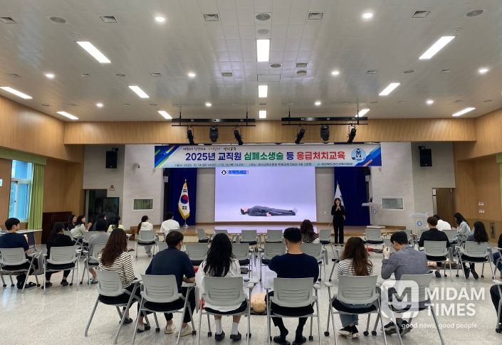 미담타임스 김준완 기자 | 경산교육지원청은 10월 14일, 16일 2회에 걸쳐 경상북도경산교육지원청 학생교육지원관 4층 2강당에서 청 직원 120여 명을 대상으로 심폐소생술 등 응급처치 교육을 실시했다.