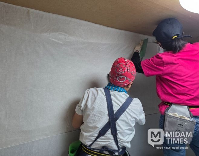 참여자들은 실습을 통해 익힌 도배 기술을 활용해 노후된 벽지를 새로 교체하며 이웃에게 쾌적하고 따뜻한 생활공간을 선물했다.