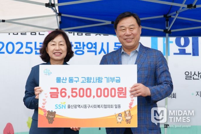 미담타임스 김준완 기자 | 울산광역시동구사회복지협의회(회장 이경신)가 10월 18일 오후 3시 일산청년광장에서 열린 동구 사회복지박람회에서 김종훈 동구청장에게 고향사랑기부금 650만 원을 했다.