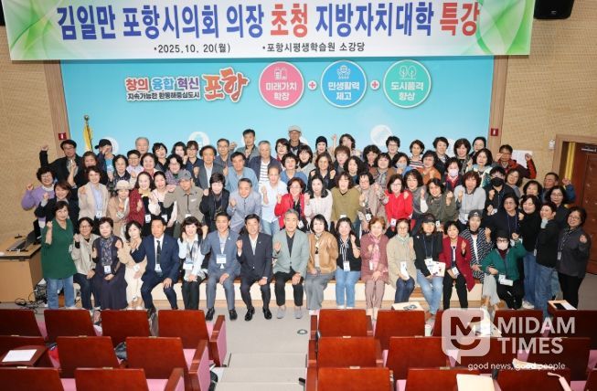 미담타임스 공한별 기자 | 포항시의회 김일만 의장은 20일 오후 평생학습원 소강당에서‘2025년 제25기 지방자치대학’수강생 100여 명을 대상으로 특강을 실시했다.
