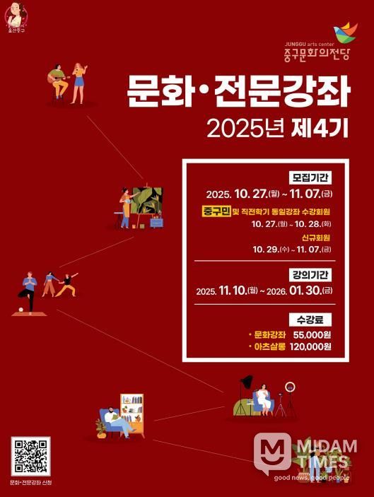 미담타임스 김준완 기자 | 울산 중구문화의전당이 2025년 4기 문화센터 수강회원을 모집한다.