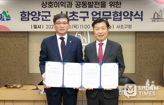 미담타임스 정주환 기자 | 서울 서초구는 지난 23일 서초구청에서 경상남도 함양군과 업무협약(MOU)를 체결했다고 밝혔다.
