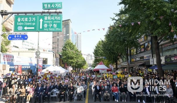 축제는 을지로3가역에서 명보아트홀, PJ호텔에 이르는 거리를 무대로 펼쳐졌다. 해군홍보대의 비보잉 공연과 풍물놀이가 흥을 돋우며 개막을 알렸다. 이어 중구의 새로운 도시브랜드 ‘이순신1545 중구’가 공식 선포됐다. 이 브랜드는 이순신 장군의 탄생 연도 ‘1545년’에서 착안해 영웅을 품은 중구가 위대한 역사의 시작점임을 의미한다.