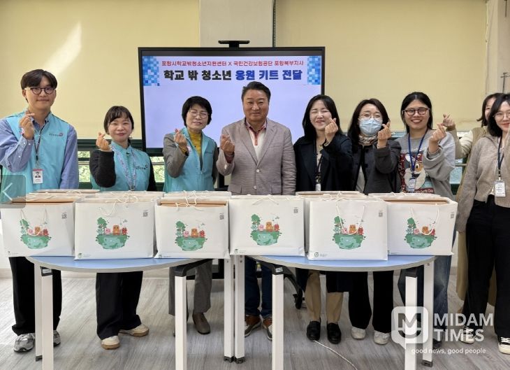 미담타임스 김준완 기자 | 포항시청소년재단 청소년상담복지센터 내 학교밖청소년지원센터는 27일 국민건강보험공단 포항북부지사로부터 학교 밖 청소년의 성공적인 대학 진학을 응원하는 ‘대학 합격 응원키트 16세트’를 전달받았다.
