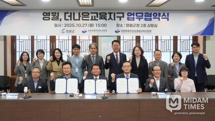 미담타임스 정인화 기자 | 강원특별자치도교육청은 영월군청(군수 최명서), 영월교육지원청과 10월 27일 영월군청에서 ‘영월 더나은교육지구 연장지정 업무협약’을 체결했다.
