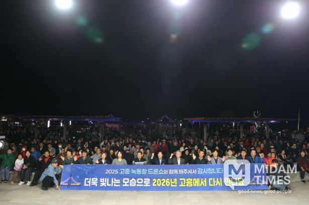 미담타임스 정인화 기자 | 고흥군은 지난 25일 녹동항 바다정원 일원에서 열린 2025 녹동항 드론쇼 폐막식을 5천여 명의 군민과 관람객이 함께 참여한 가운데 성황리에 마쳤다고 밝혔다.