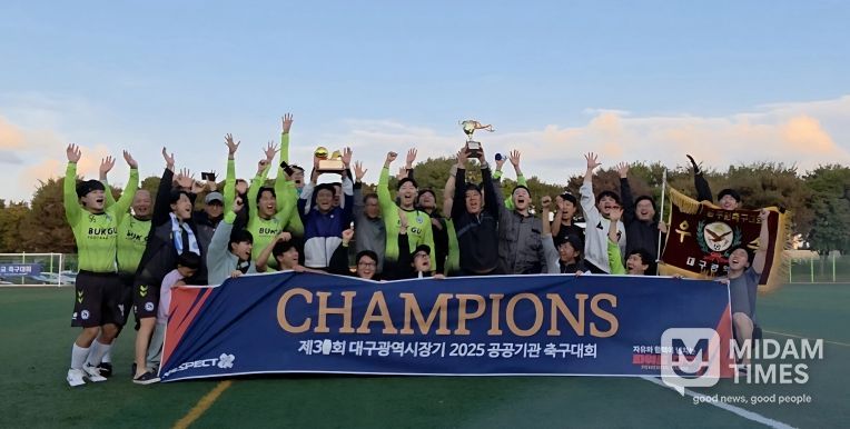 미담타임스 김교환 기자 | 대구 북구청 축구동호회가 지난 10월 25일 열린 제31회 대구시장기 공공기관 축구대회 결승전에서 대구광역시청을 3:2로 꺾고 1997년 제7회 대회 이후 28년여 만에 우승을 차지했다.