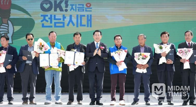 미담타임스 정인화 기자 | 김영록 전라남도지사는 28일 2025국제농업박람회 주무대에서 열린 ‘전남 농촌지도자회원 한마음대회’에 참석해 농촌의 든든한 지킴이인 농촌지도자회원들을 격려하고, ‘힘찬 도약 전남농업’을 향한 결의를 다졌다.