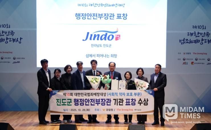 미담타임스 정인화 기자 | 진도군은 10월 28일에 경찰청과 중앙일보, 제이티비씨(JTBC)가 주관한 ‘제10회 대한민국 범죄예방대상’ 시상식에서 사회적 약자 보호 부문 ‘행정안전부 장관상’을 수상했다고 밝혔다.