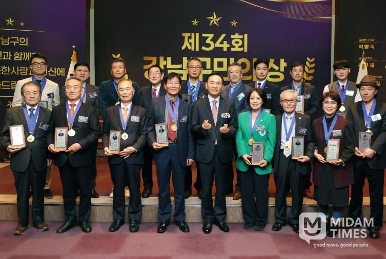 미담타임스 정주환 기자 | 꿈이 모이는 도시, 미래를 그리는 강남구가 지난 10월 28일 코엑스 컨퍼런스룸에서 ‘제34회 강남구민의 상’ 시상식을 열고, 지역사회 발전과 주민 복지 증진에 기여한 구민 12명과 5개 단체(법인)에 상을 수여했다.