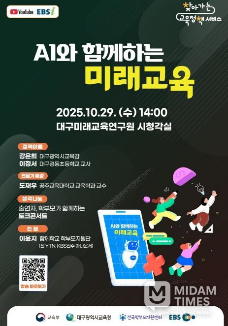 이번 행사는‘AI와 함께하는 미래교육’을 주제로 학부모가 국가 및 지역 교육정책의 방향을 이해하고, 정책 형성과 실행 과정에 참여할 수 있도록 돕기 위해 마련된 자리로, 대구시교육청과 교육부가 공동 주최하고 한국교육방송공사(EBS)가 주관한다.