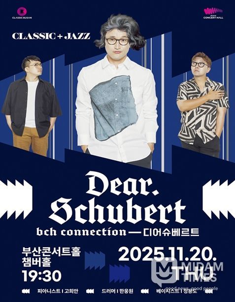 미담타임스 김교환 기자 | 부산시 클래식부산은 오는 11월 20일 저녁 7시 30분 챔버홀에서 ▲피아니스트 고희안 ▲드럼 한웅원 ▲베이스 정용도와 클래식부산 오케스트라 수석들이 주축이 된 '부산콘서트홀 커넥션-디어 슈베르트'의 공연을 개최한다고 밝혔다.