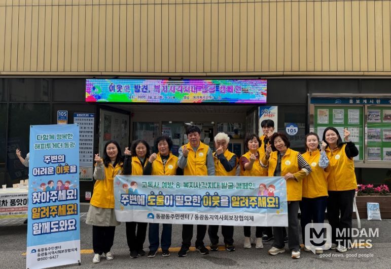 미담타임스 김교환 기자 | 부산 중구 동광동과 지역사회보장협의체(민간위원장 김연순)는 복지 사각지대에 놓인 이웃을 조기에 발굴하고 지원체계를 강화하기 위해 지난 30일 동광동주민센터 입구에서 복지 사각지대 발굴을 위한 캠페인을 실시했다.