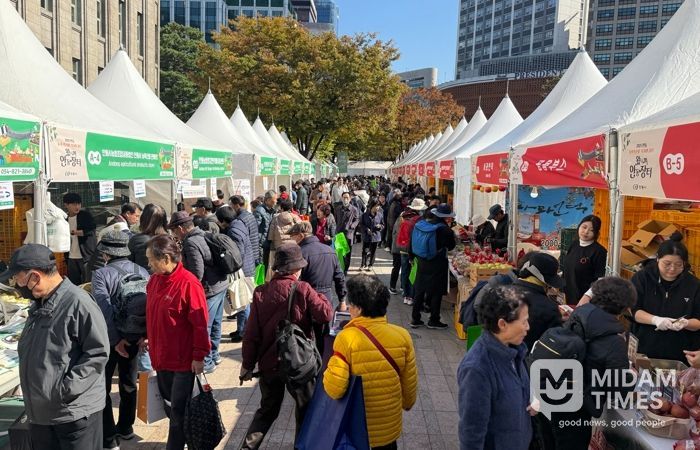 미담타임스 김준완 기자 | 서울시청 앞 서울광장에서 열린 ‘2025 안동 농축특산물 직거래장터’가 10월 27일부터 30일까지 4일간 수도권 시민의 뜨거운 관심과 참여 속에 성황리에 막을 내렸다. 시중보다 저렴한 가격에 소비자들을 만날 수 있는 좋은 기회이자, 생산자와 직접 소통하며 신뢰할 수 있는 먹거리를 구매하는 시간이었다.