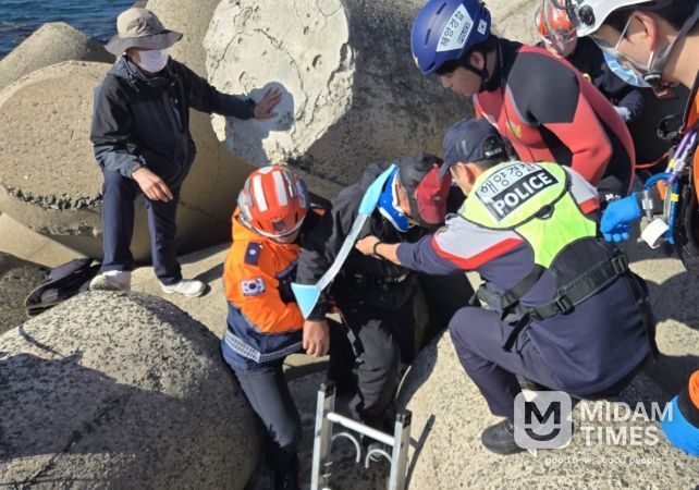 미담타임스 김준완 기자 | 울산해양경찰서(서장 안철준)는 1일 오전 10시 25분경 울산 방어진 슬도방파제 인근 TTP(테트라포트) 추락자 A씨(60대. 남. 울산거주)를 소방과 합동으로 신속히 구조했다고 밝혔다.