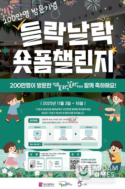 미담타임스 김교환 기자 | 부산시는 들락날락의 2025년 누적 방문자 200만 명 달성을 기념해 오늘(3일)부터 16일까지 2주간 시민과 함께하는 '들락날락 숏폼 챌린지'를 진행한다고 밝혔다.