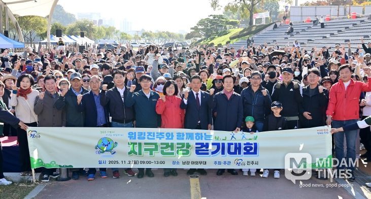 미담타임스 김교환 기자 | 진주시는 2일 칠암동 남강 야외무대에서 시민들의 뜨거운 참여 속에 ‘워킹진주와 함께하는 지구건강 걷기대회’를 성황리에 개최했다.
