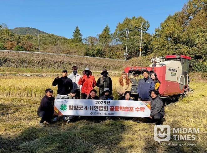 미담타임스 김교환 기자 | 함양군 4-H연합회는 11월 3일 유림면 국계리 일원에 있는 공동학습포에서 가루쌀 1.5톤을 수확했다고 밝혔다.