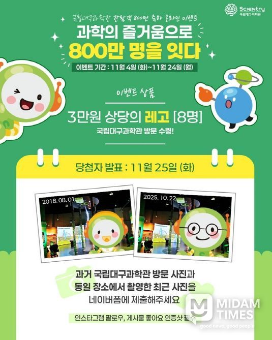 또한 국립대구과학관은 공식 인스타그램을 통해 ‘800만 축하 온라인 이벤트’도 진행한다.