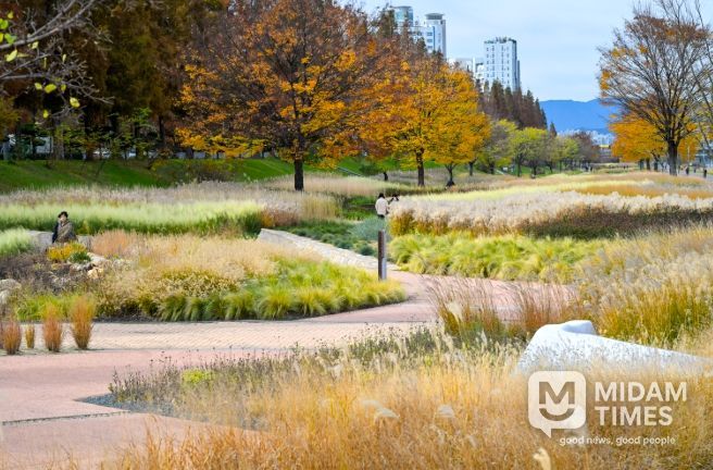 미담타임스 김준완 기자 | 울산 남구를 대표하는 도심 속 정원인 태화강그라스정원에 팜파스 그라스와 국화를 비롯한 가을꽃이 만개해 가을의 정취를 느끼고자 하는 시민들의 발길을 붙잡고 있다.