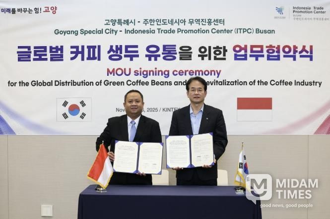 미담타임스 정주환 기자 | 고양특례시는 지난 6일, ‘2025 카페·베이커리페어 시즌2’가 열리고 있는 킨텍스에서 주한인도네시아 무역진흥센터(ITPC 부산)와 ‘글로벌 커피 생두 유통 협력 협약’을 체결했다.