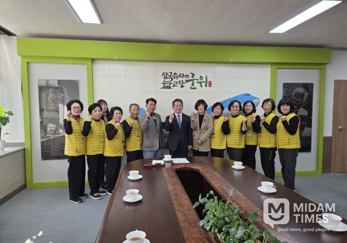 미담타임스 김준완 기자 | 김진열 군위군수는 군위군 터링 선수단(지부장 이명숙) 및 군위읍 농촌중심지 활성화사업 관계자(사무장 오상경)들과 지난 6일 군수실에서 간담회를 가졌다.