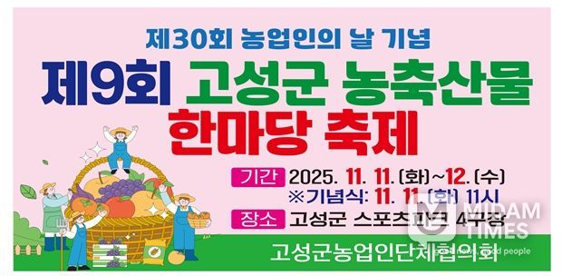 미담타임스 김교환 기자 | 고성군은 오는 11월 11일부터 12일까지 고성군스포츠타운 4구장에서 ‘제30회 농업인의 날 기념, 제9회 고성군 농축산물 한마당 축제’를 개최한다.