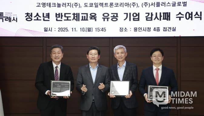 미담타임스 정주환 기자 | 용인특례시는 10일 시청 접견실에서 ㈜서플러스글로벌과 업무협약(MOU)을 체결하고, 지역 청소년 반도체 교육에 기여한 기업 3곳에 감사패를 수여했다고 11일 밝혔다.