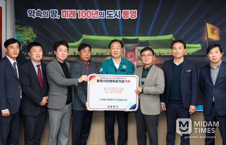 미담타임스 김교환 기자 | 서남해수어류양식수협(조합장 김성훈)은 지난 10일 통영시(시장 천영기)를 방문해 인재육성기금 1000만원을 기탁했다.