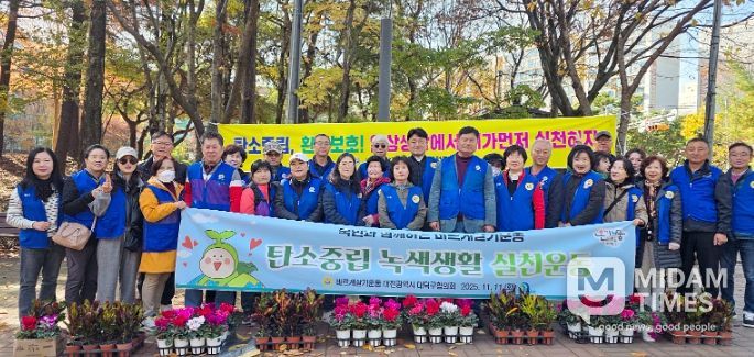 미담타임스 김준완 기자 | 대전 대덕구는 11일 바르게살기운동 대전대덕구협의회(회장 김광남)가 회원 20여 명과 함께 송촌체육공원 일원에서 ‘탄소중립 녹색생활 실천 캠페인’을 펼쳤다.