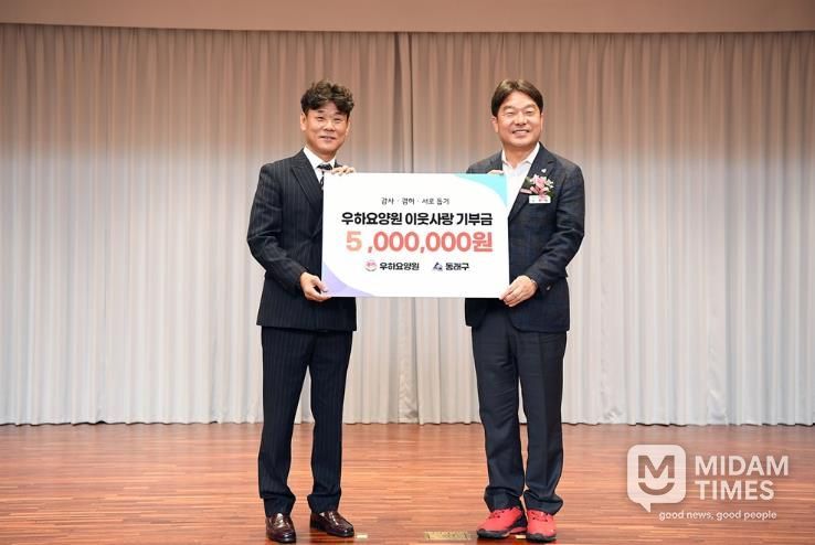 한편, 우하요양원은 지난해에도 1천만 원을 기부한 바 있으며, 올해 기부한 630만 원은 ‘우리동래 희망플러스’ 협약 계좌로 기탁되어 동래구민을 위한 복지 특화사업비로 사용될 예정이다.