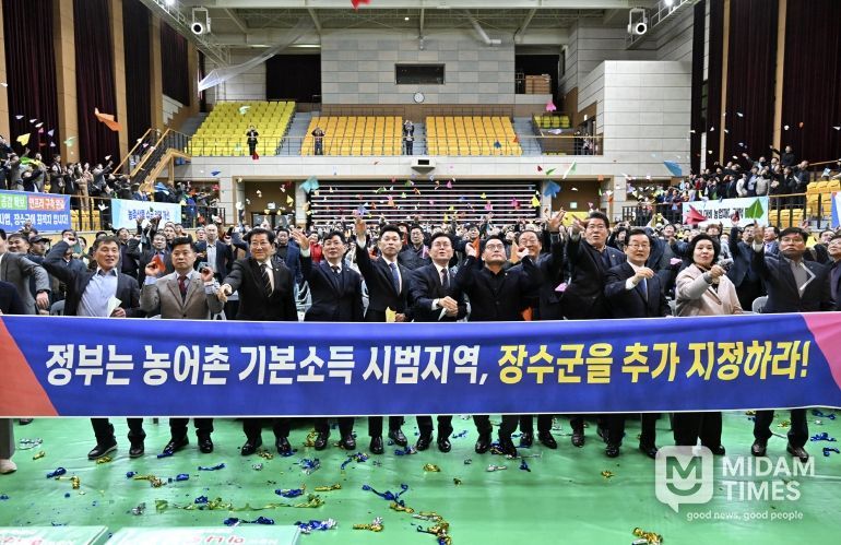 이어서 장수군 농업인단체협의회 정상길 회장이 ‘농어촌 기본소득 시범사업 추가 선정을 촉구하는 선언문’을 낭독했다.