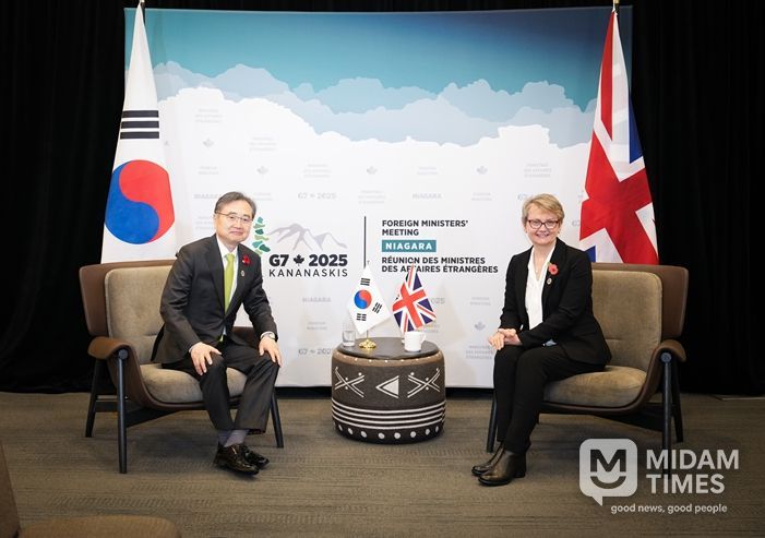 미담타임스 정주환 기자 | G7 외교장관회의 참석을 위해 캐나다를 방문 중인 조현 외교부 장관은 현지시간 11월 11일 오후 이벳 쿠퍼(Yvette Cooper) 영국 외교장관과 첫 양자회담을 가졌다.