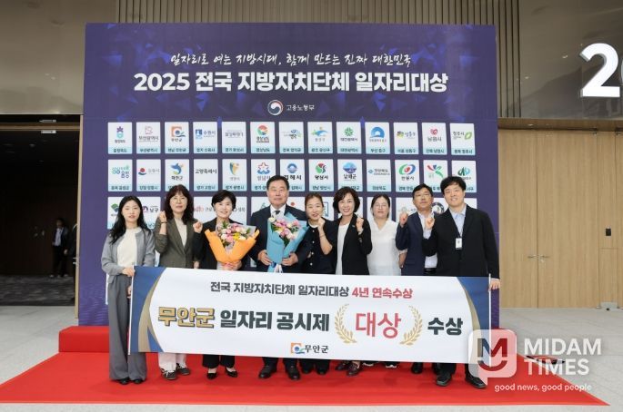 이와 관련해 무안군은 최근 4년간 고용노동부 주관 ‘전국 지방자치단체 일자리 대상’ 지역 일자리 목표 공시제 부문에서 연속으로 수상((2022.~2025.)했으며, 특히 올해는 지난 9월 30일 충북 청주 OSCO에서 열린 2025년 전국 지방자치단체 일자리대상 시상식에서 전국 기초 지자체 중 1위라고 볼 수 있는 기초지자체 ‘대상’을 수상했다.