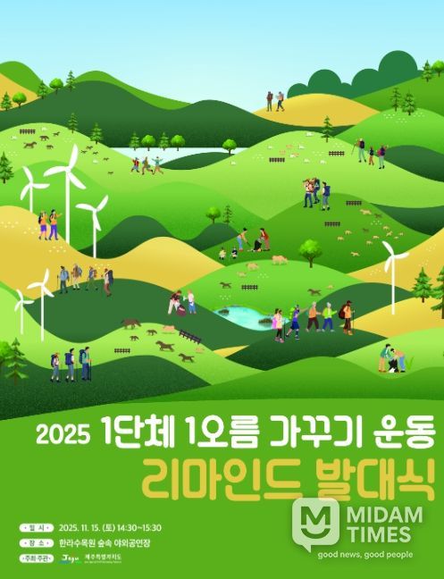 미담타임스 김준완 기자 | 제주특별자치도는 오는 15일 오후 한라수목원 숲속 야외공연장에서 ‘1단체 1오름가꾸기 운동 리마인드 발대식’을 개최한다.